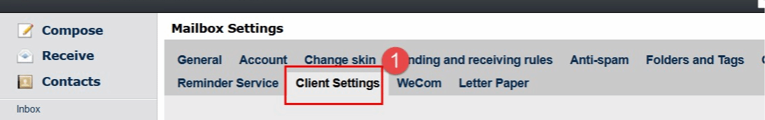 (1)Log in to the mailbox through a computer web browser, click [Set] - select [Client Settings]